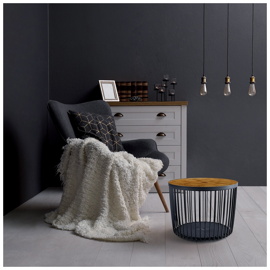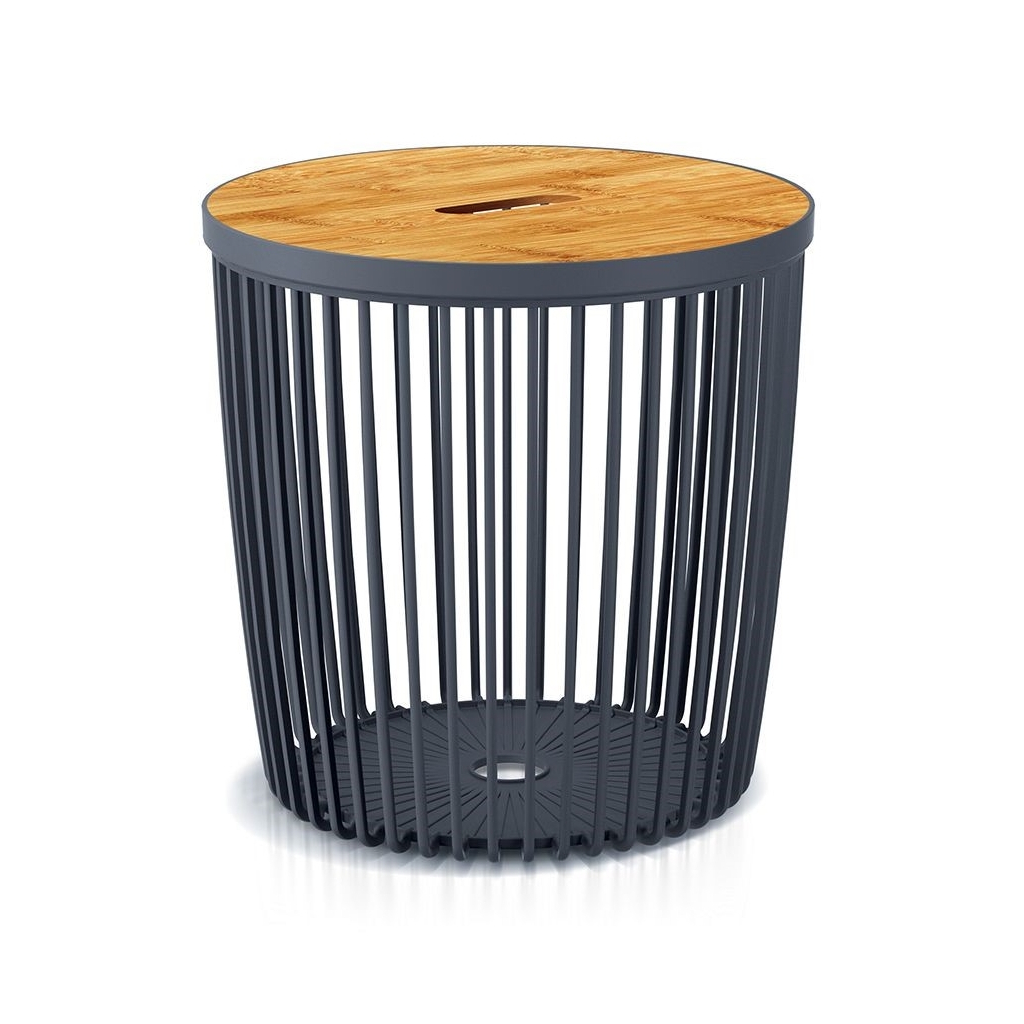 Úložný prostor, nebo odkládací stolek? Rozhodněte se sami! Tento univerzální koš nabízí několik řešení v jednom produktu. Využijte ho jako stolek pro odložení šálku kávy a klidně do něj uschovejte třeba deky. Koš je vyrobený z pevného plastu a odnímatelné víko z bambusu. Průměr víka je 59 cm.