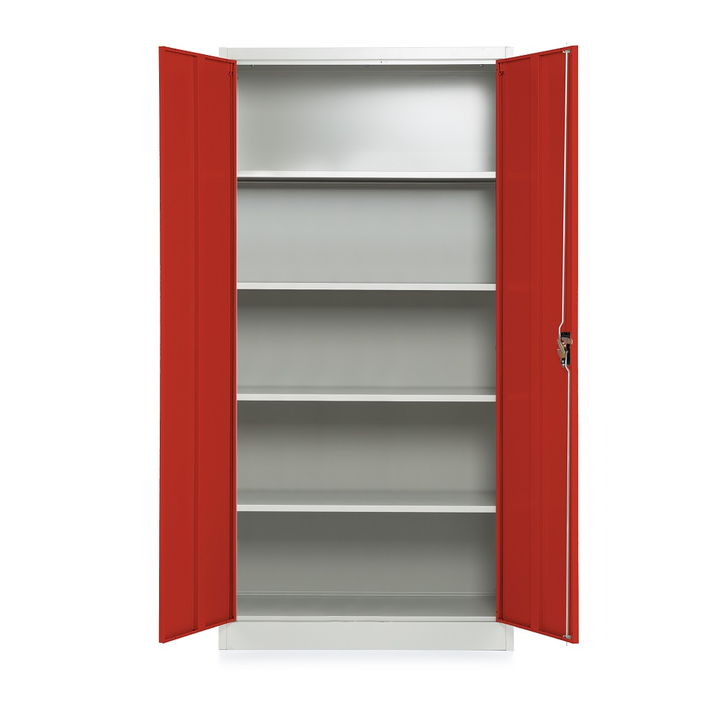 Univerzální kovová skříň, 90 x 40 x 185 cm, cylindrický zámek, červená - ral 3000