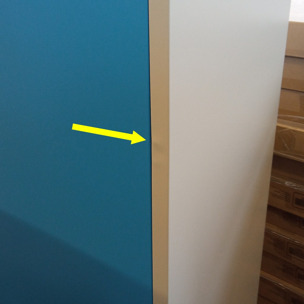 Oba boky skříně jsou v přední části mírně zdeformované (viz fotogalerie), jinak je zboží bez závady.