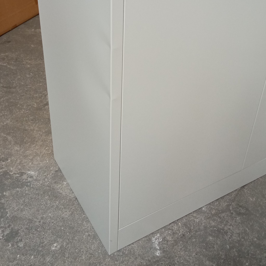 Konstrukce je vyrobena z pevného ocelového plechu a dodáváme ji v několika barevných provedeních dvířek. Jedná se o standardizované odstíny RAL. Korpus je u této varianty skříně v barvě RAL 7035 (světle šedá).