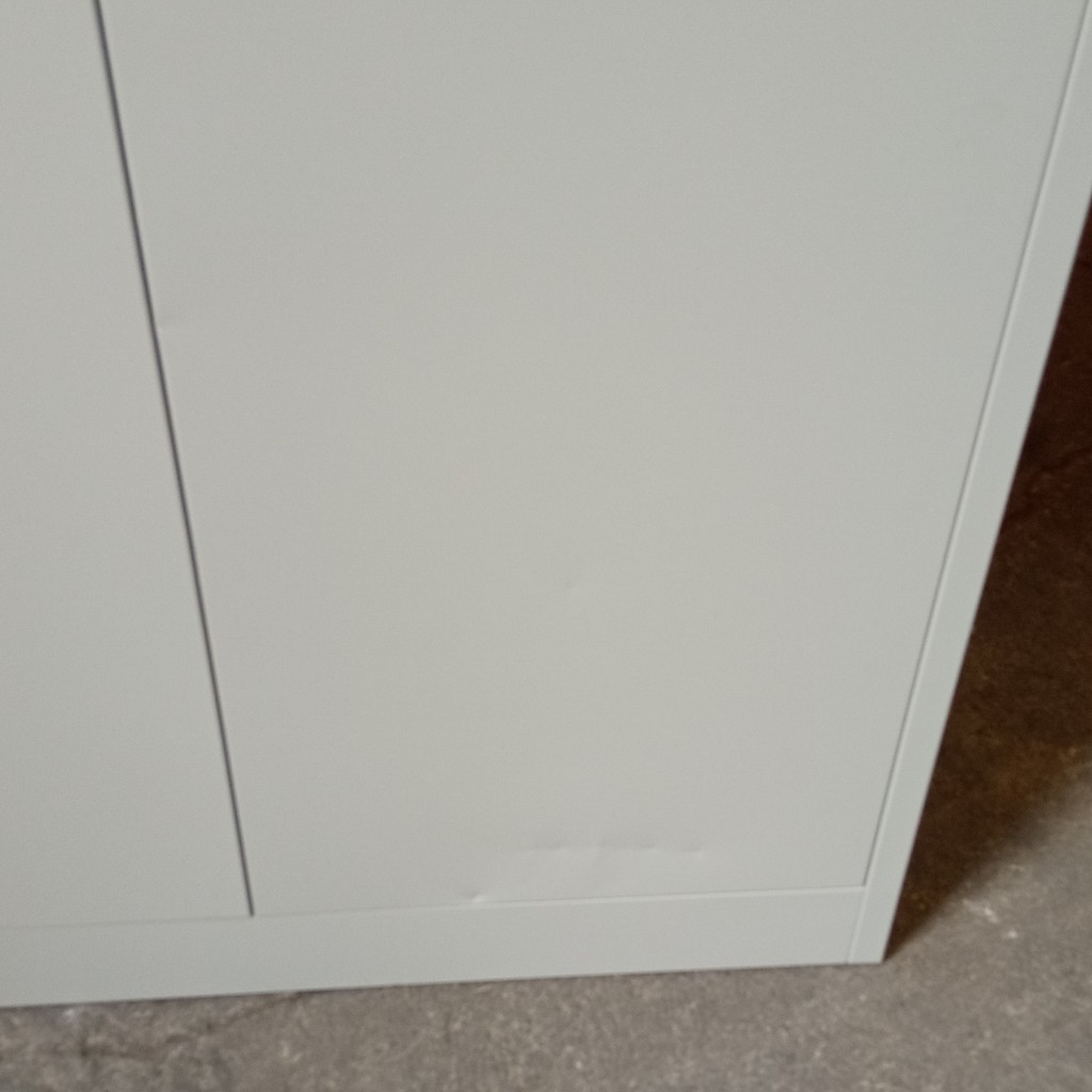 Pravý bok a dveře skříně jsou zepředu zdeformované (viz fotogalerie), na funkčnost produktu to nemá vliv.