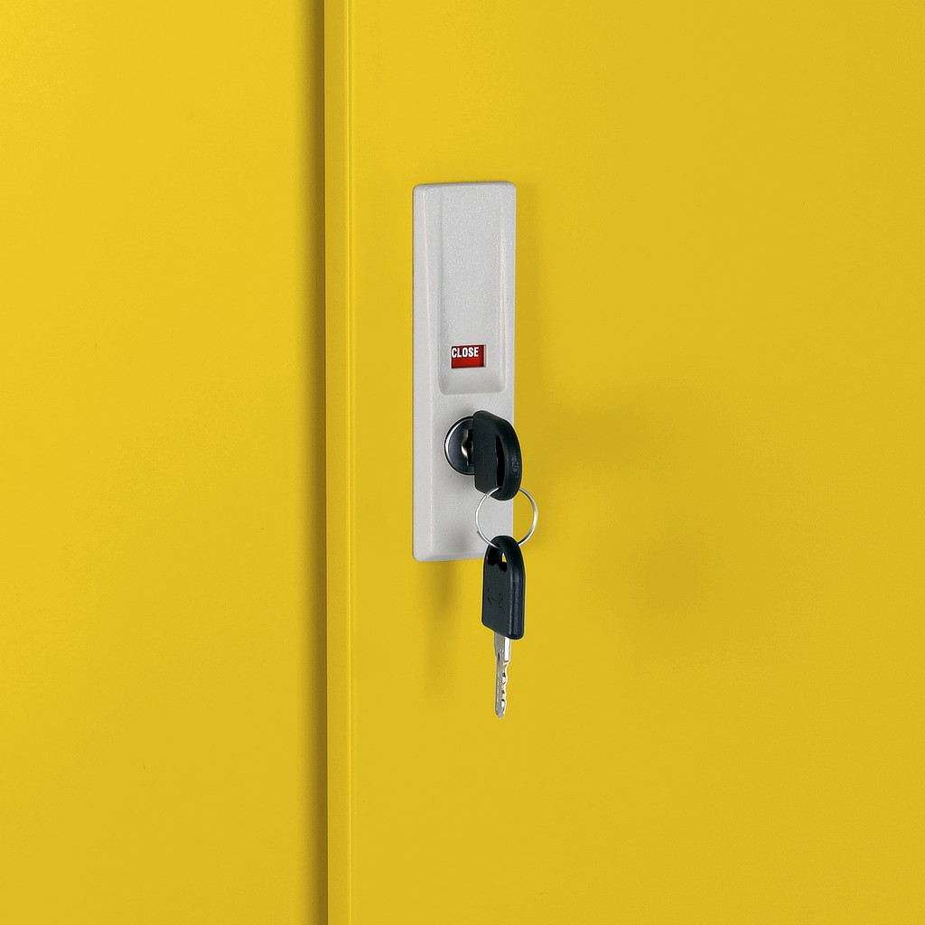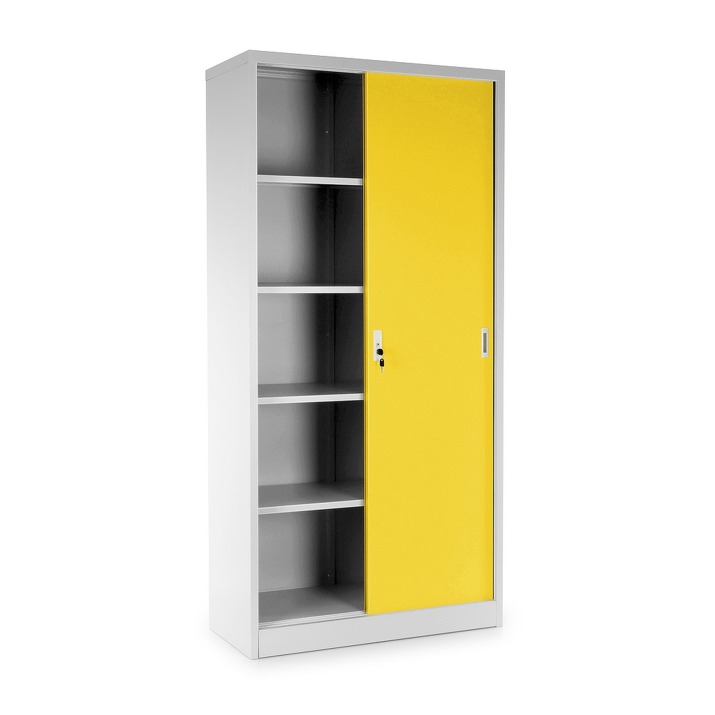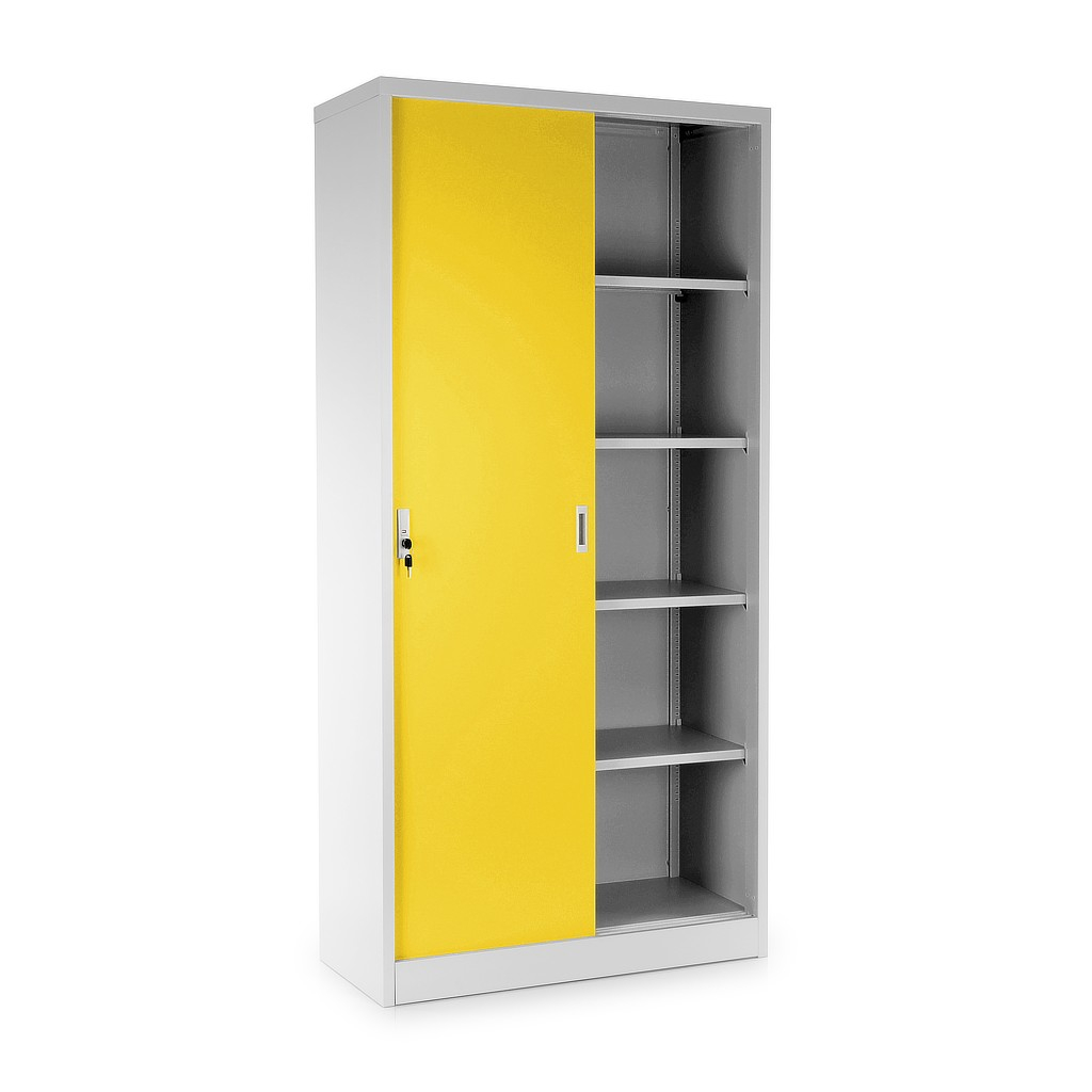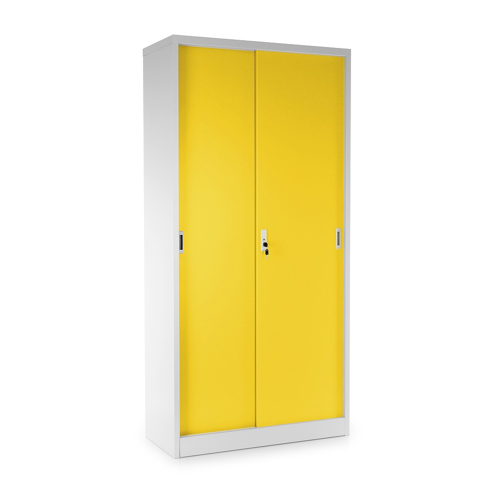 Univerzální kovová skříň s posuvnými dveřmi 90 x 40 x 185 cm, cylindrický zámek, žlutá - ral 1023