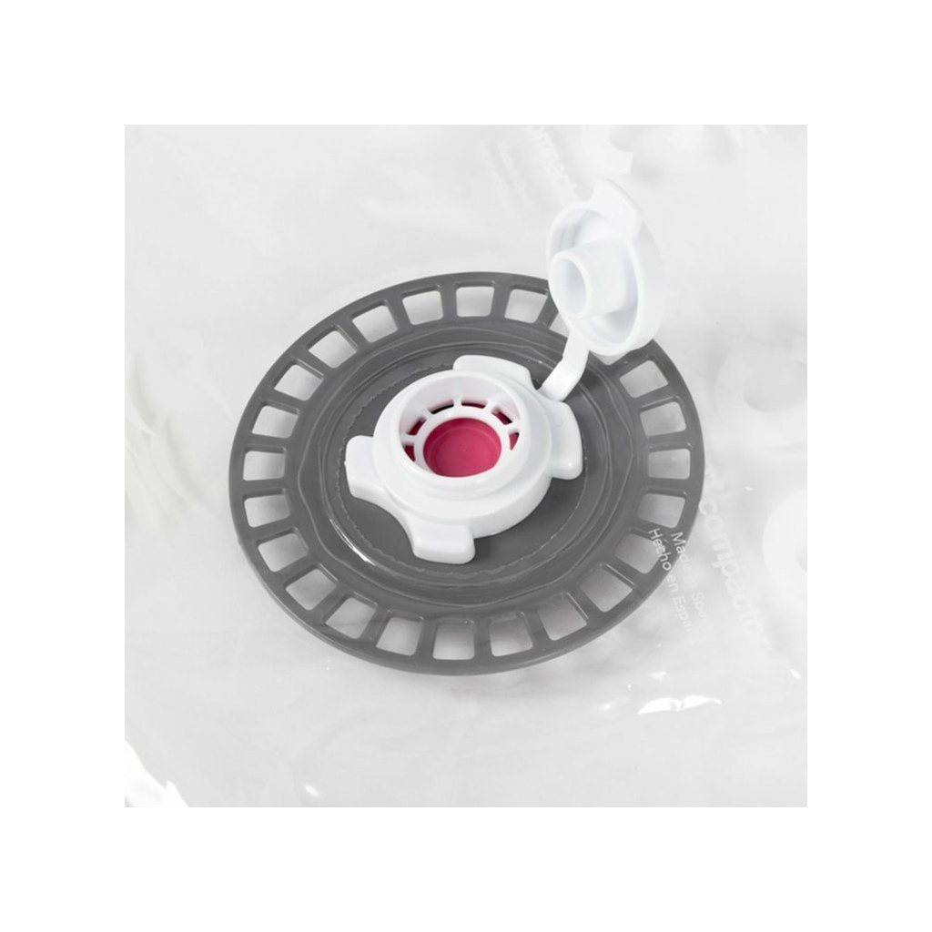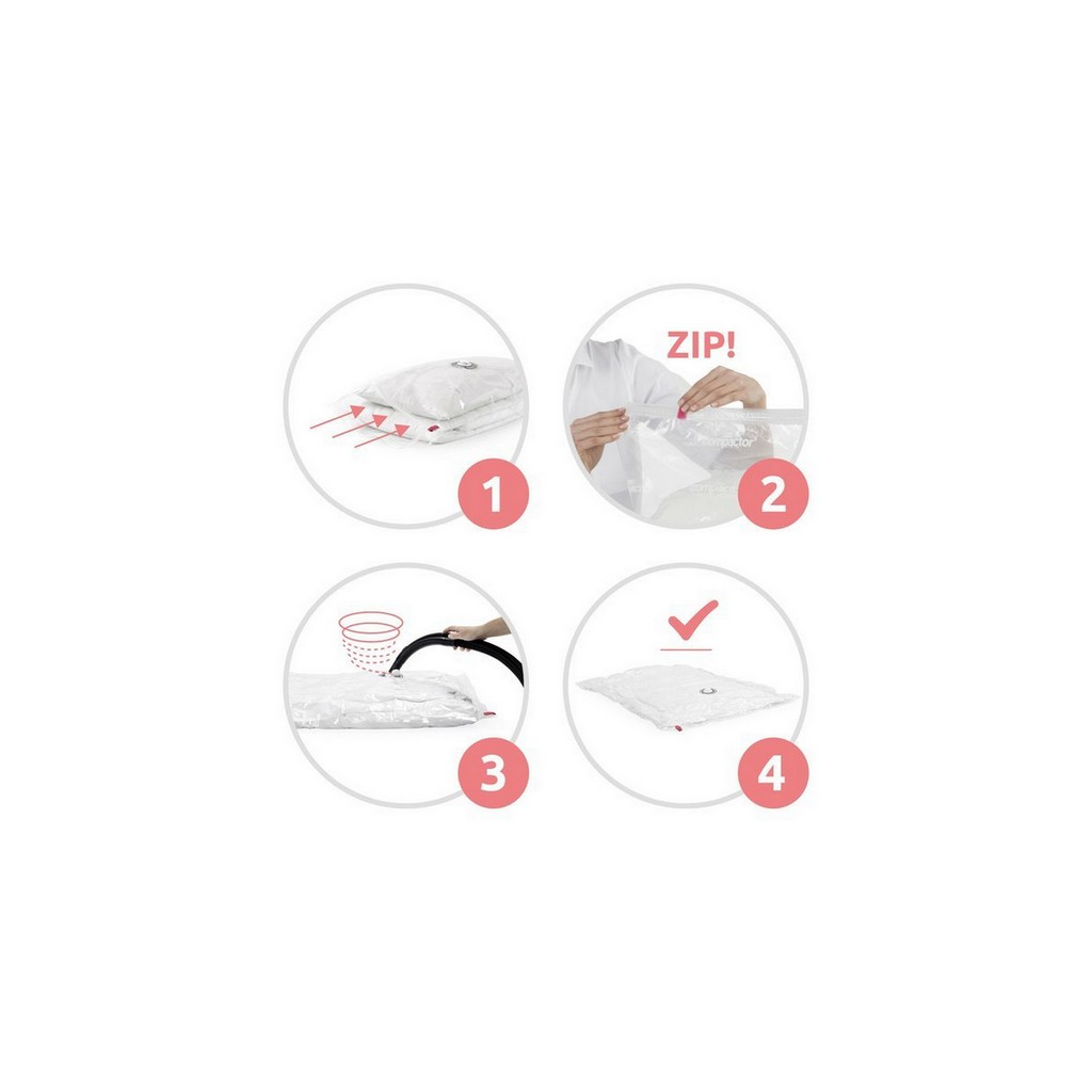 Práce s vakuovým pytlem je velmi snadná díky jednocestnému ventilu, který zabraňuje opětovnému nasání vzduchu, a plastovému zipu s jezdcem. Ten pytel spolehlivě uzavře. Ventil je kompatibilní se všemi typy vysavačů.