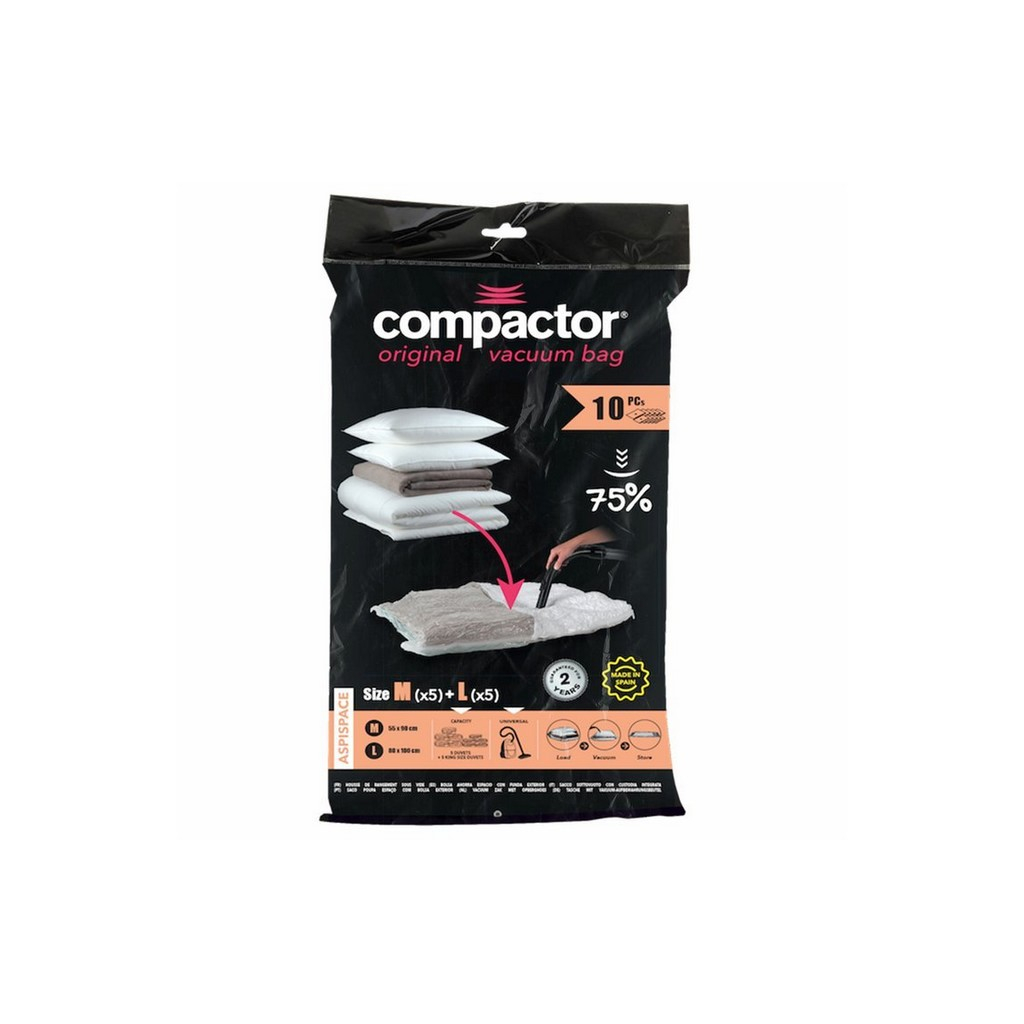 (70 l) a 5 kusů velikosti L (120 l). Pohodlně tak do vaků umístíte běžné přikrývky i polštáře.