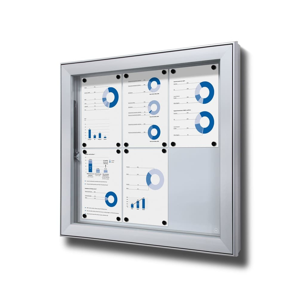Vitrína ve formátu 6 x A4 disponuje magnetickým popisovatelným povrchem. Ten je určen pro popisování za sucha stíratelnými popisovači. Kromě psaní však můžete využít také magnetů pro připnutí všech důležitých dokumentů, které tak budete mít stále na očích.