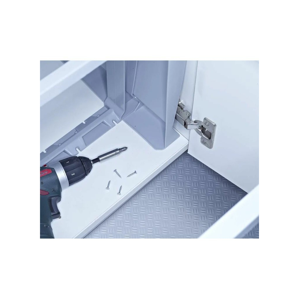 Plocha na vrchní straně boxu poskytuje místo pro drobné předměty, jako jsou odpadkové sáčky nebo mycí houby. Instalace boxu je velice snadná – stačí box upevnit 4 šrouby a je hotovo.