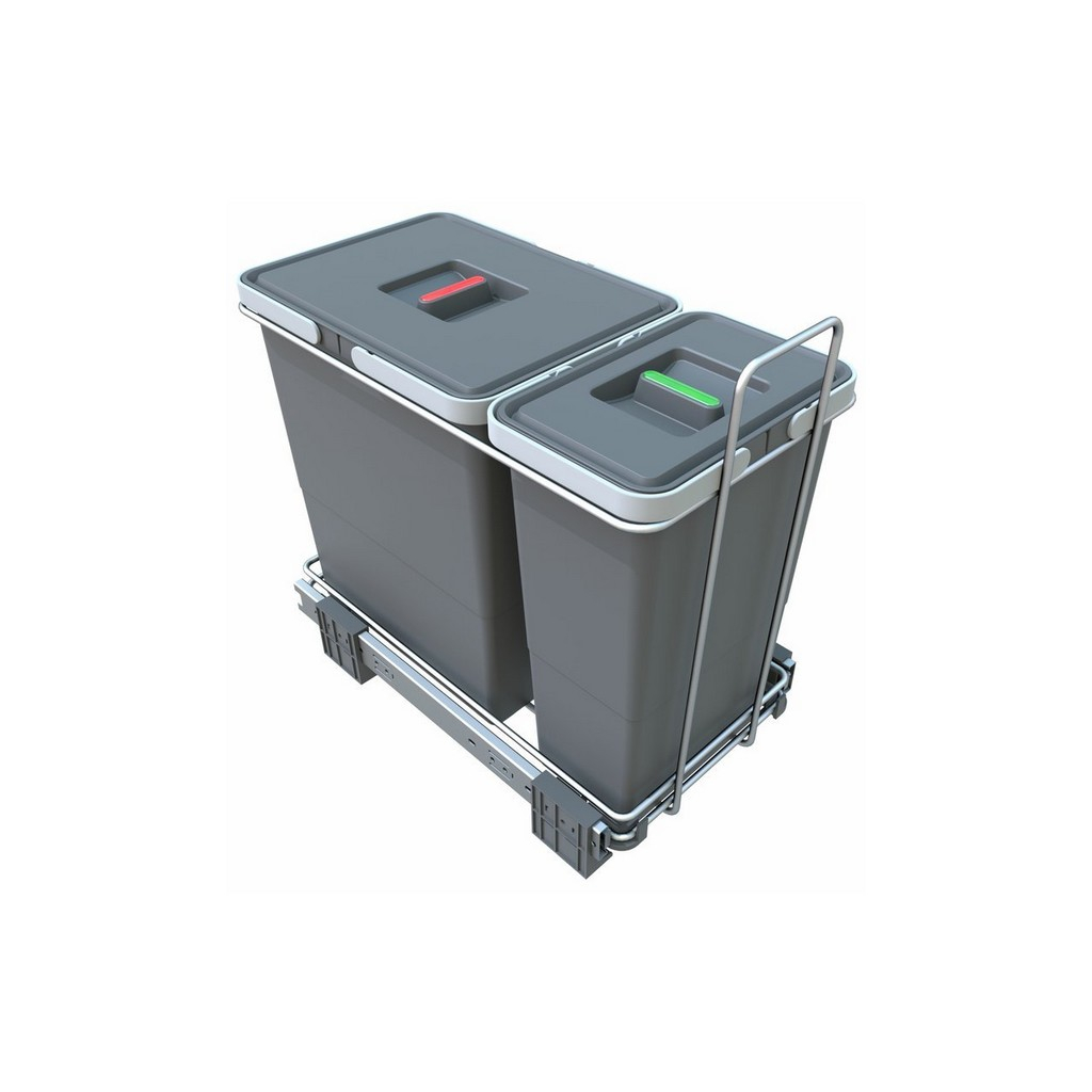 Koše jsou umístěné v rámu z chromované oceli a jsou opatřené víky. Díky těm se případný zápach nedostane ven. Umístěním např. ve skříni koše nenarušují vzhled místnosti. Každý z košů je navíc rozdělený drážkou na 2 části, do 1 nádoby tak můžete umístit 2 pytle na třídění odpadu.