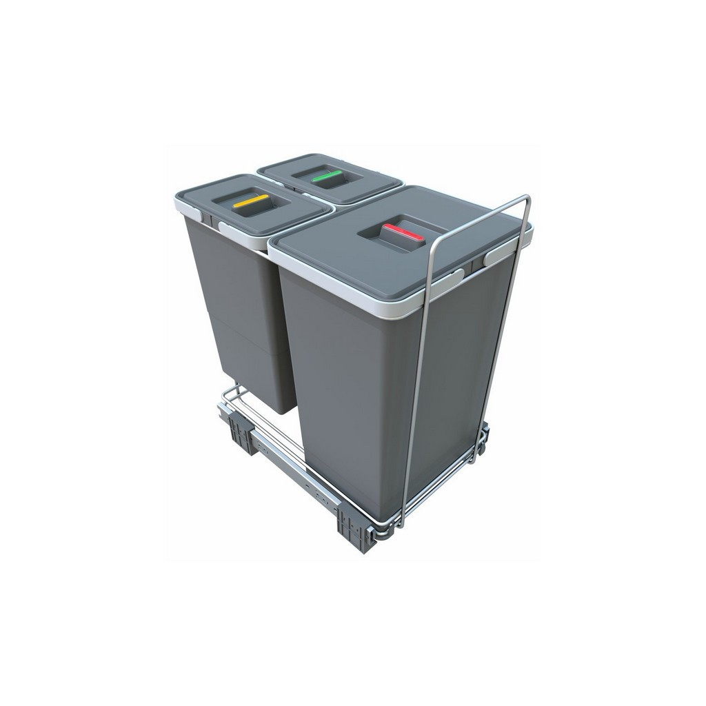 Vestavný koš na tříděný odpad s rámem 24 + 8 + 8 l, šedá