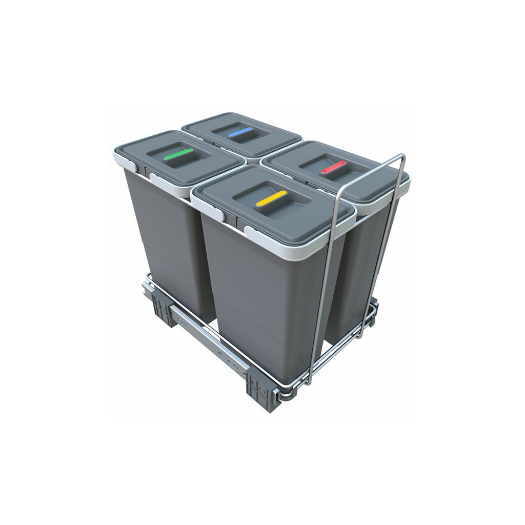 Vestavný koš na tříděný odpad s rámem 8 + 8 + 8 + 8 l, šedá