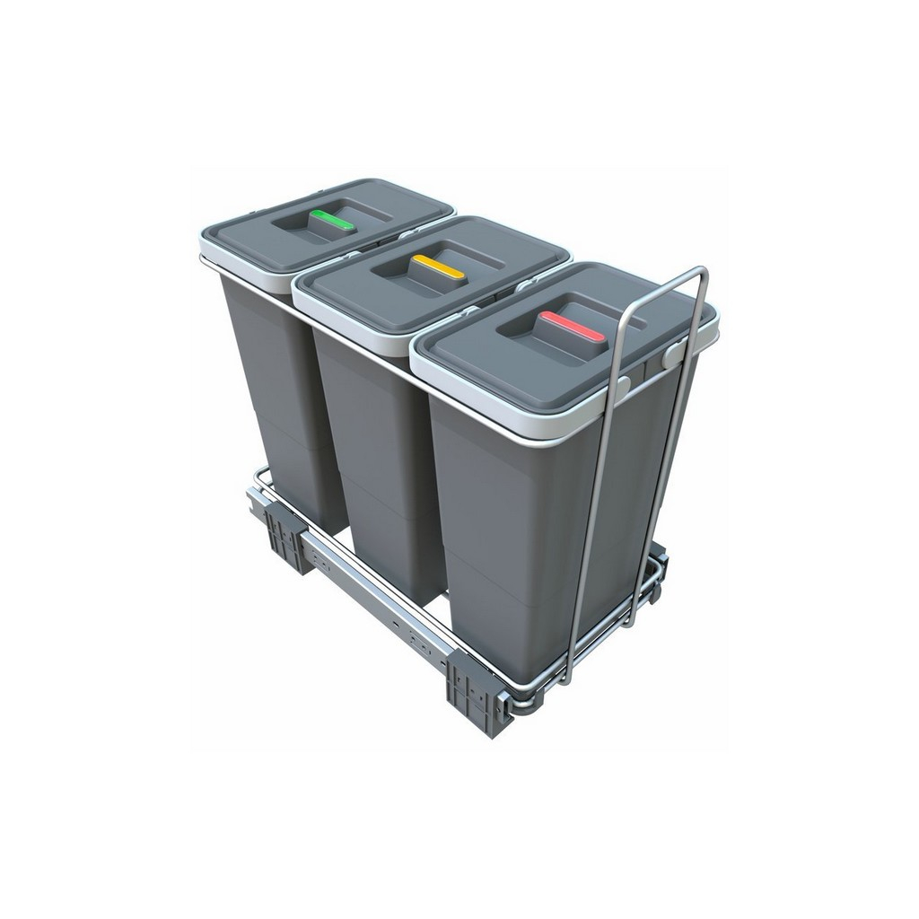 Vestavný koš na tříděný odpad s rámem 8 + 8 + 8 l, šedá