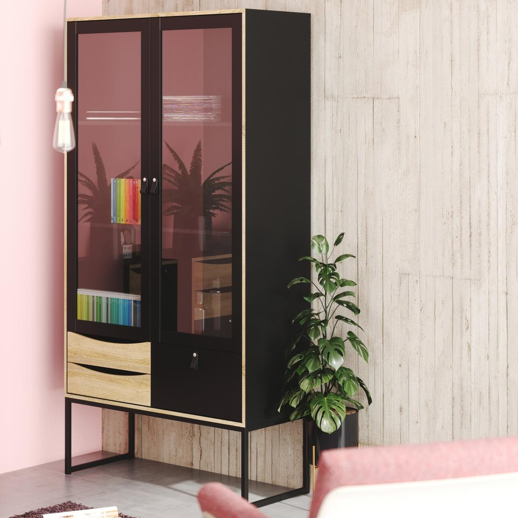 Vitrína Sheba představuje elegantní a praktické řešení pro váš domov, které kombinuje odolné materiály s industriálním stylem. Díky prostorné výšce 189 cm a skleněným dveřím poskytuje dostatek místa pro ukládání i dekorativní vystavení vašich oblíbených předmětů. Kovová konstrukce s nohami zajišťuje stabilitu a zároveň vtiskne prostoru moderní lehkost.