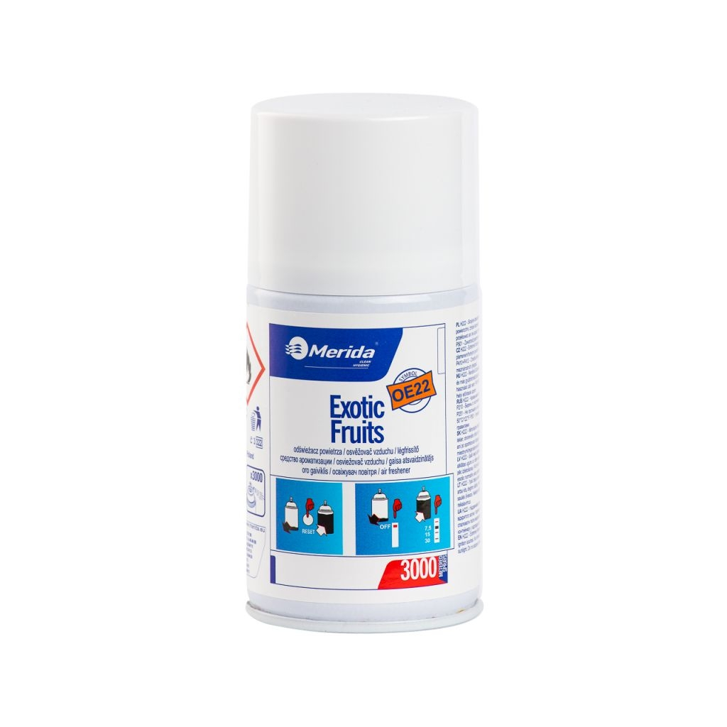 Příjemná vůně do osvěžovače vzduchu EXOTIC FRUITS zajistí dlouhotrvající vůni v hotelech, penzionech, kancelářích či konferenčních sálech. Účinně eliminuje nepříjemný zápach a provoní místnost vůní exotického ovoce. Zásobník obsahuje 3000 dávek vůně a zvládne provonět vzduch v místnostech do 170 m3.