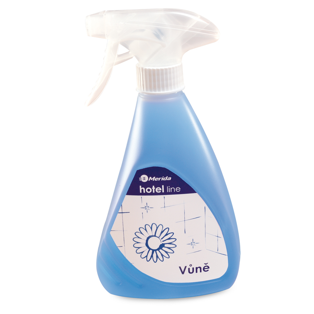 Balení květinové vůně Merida Hotel Line má objem 500 ml a je přizpůsobeno k pohodlné aplikaci do prostoru pomocí rozprašovače.