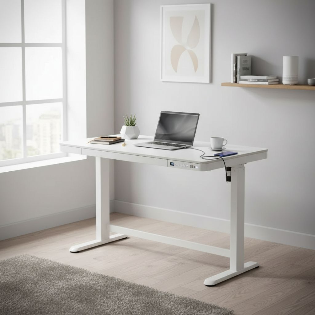 Horní rám stolu je opatřený 12 mm deskou z dřevovlákna s rozměry 120 × 60 cm. Zároveň disponuje úložnou zásuvkou, 2 micro USB sloty a jedním USB C slotem.