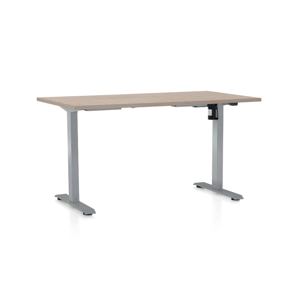 Výškově nastavitelný stůl OfficeTech A, 140 x 80 cm, šedá podnož, dub