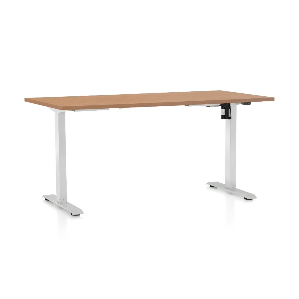 Desky těchto stolů jsou z laminované dřevotřísky s ochrannou ABS hranou. Kovové podnože mají variabilní délku a šířku bezmála 70 cm, což jim zaručí skvělou stabilitu. Napájení řeší kabel do klasické 230V zásuvky.