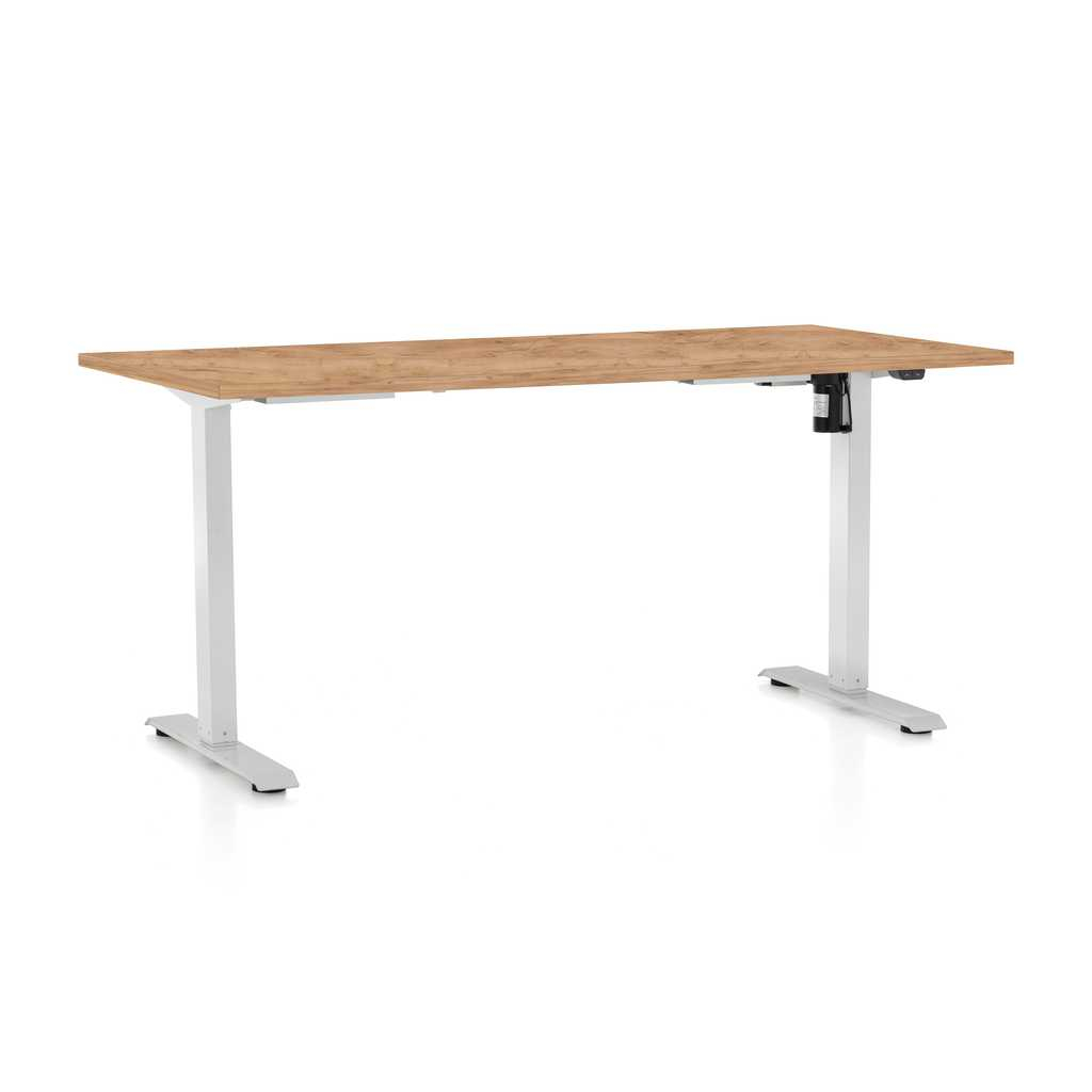 Výškově nastavitelný stůl OfficeTech A, 160 x 80 cm, bílá podnož, dub kraft
