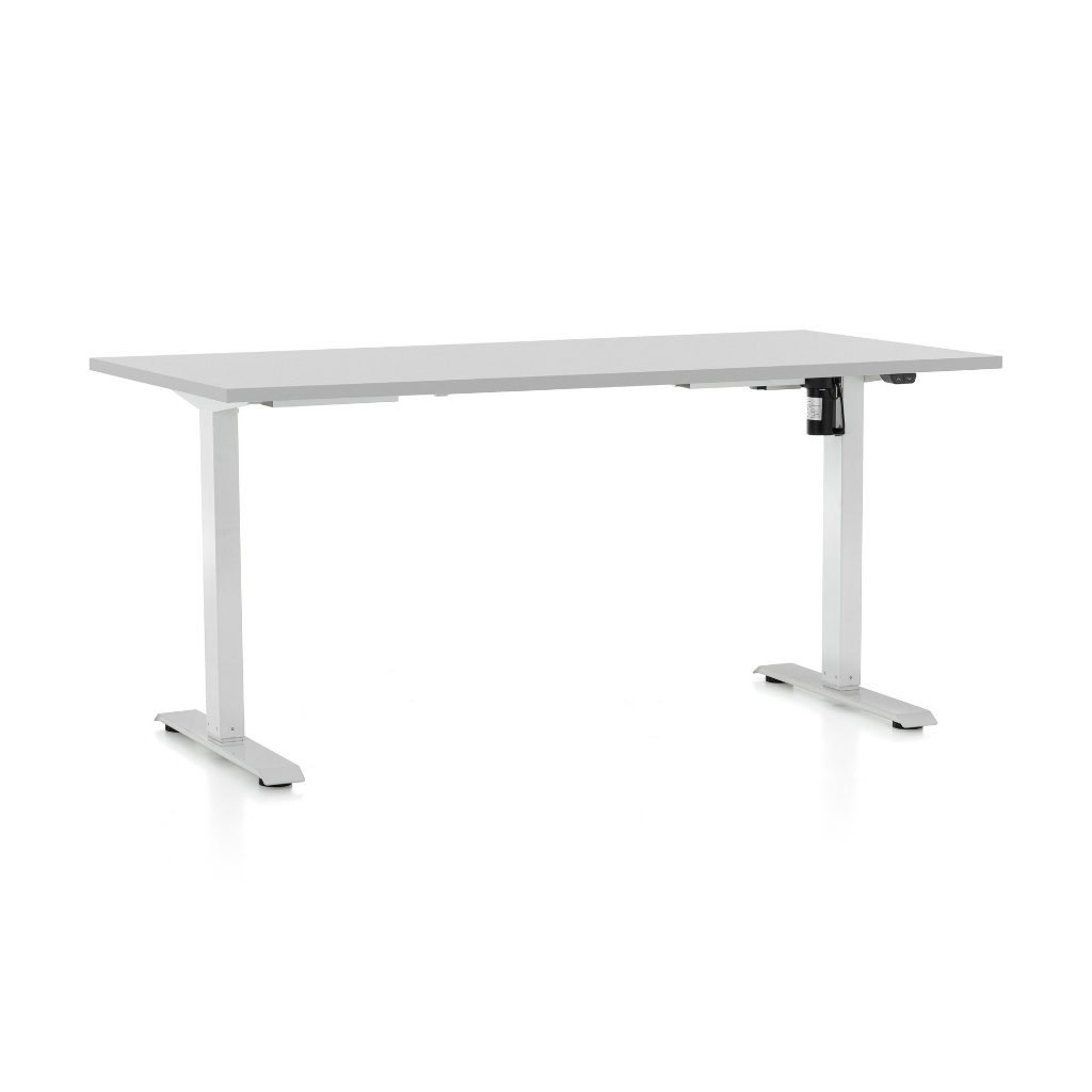 Výškově nastavitelný stůl OfficeTech A, 160 x 80 cm, bílá podnož, světle šedá