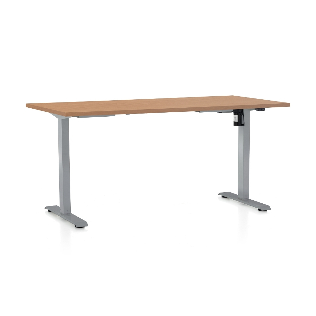 Výškově nastavitelný stůl OfficeTech A, 160 x 80 cm, šedá podnož, buk