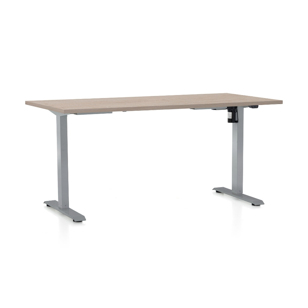 Výškově nastavitelný stůl OfficeTech A, 160 x 80 cm, šedá podnož, dub