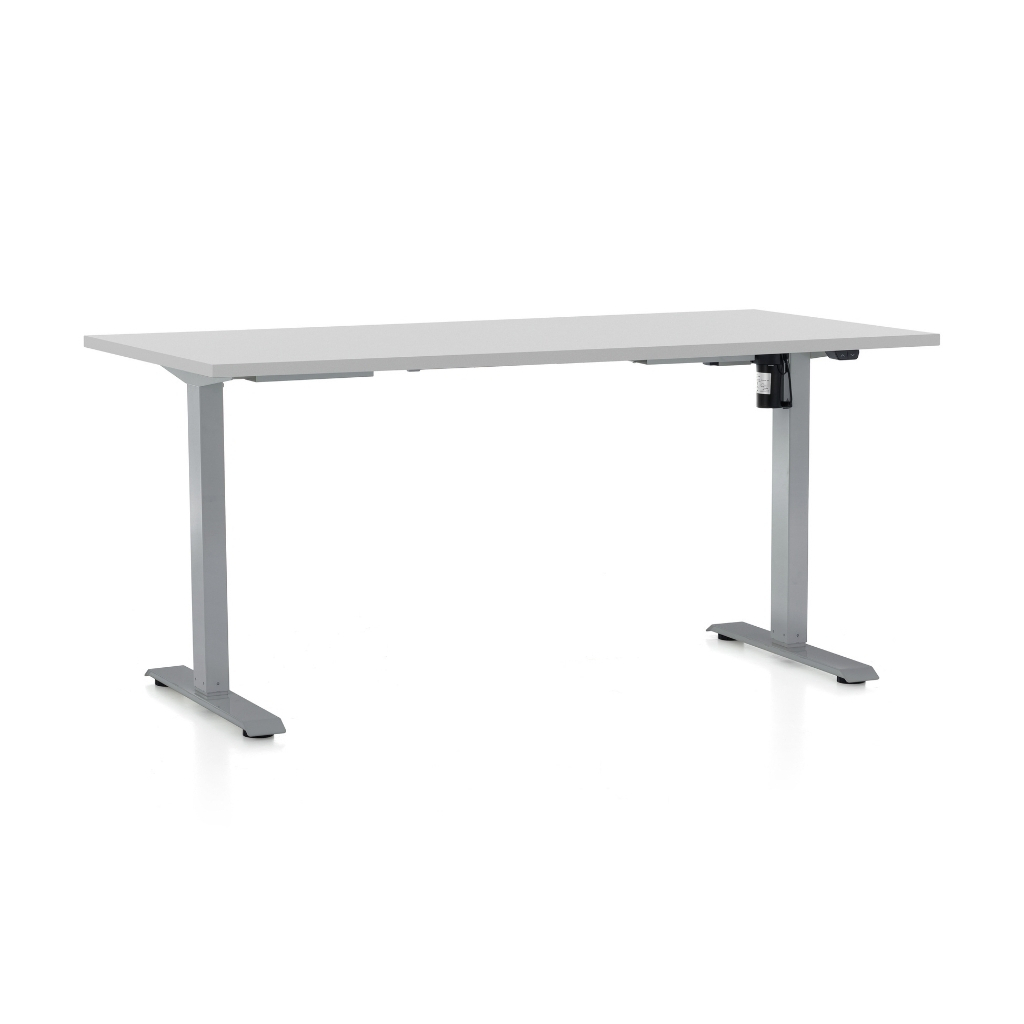 Výškově nastavitelný stůl OfficeTech A, 160 x 80 cm, šedá podnož, světle šedá