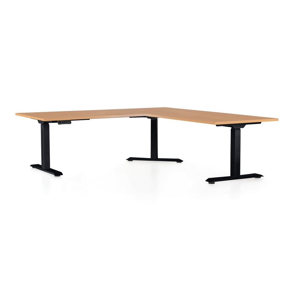 Desky těchto stolů jsou z laminované dřevotřísky s ochrannou ABS hranou. Kovové podnože mají variabilní délku a šířku bezmála 70 cm, což jim zaručí skvělou stabilitu. Napájení řeší kabel do klasické 230V zásuvky.