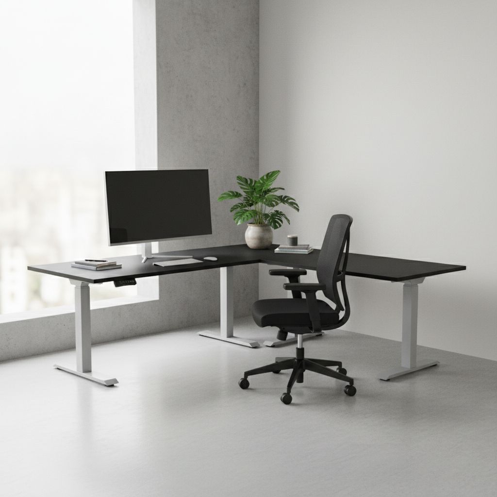 Tento typ stolu OfficeTech je jasná volba pro každého, kdo potřebuje na pracovním stole více místa. Na desku ve tvaru L o vnějších rozměrech 200 × 180 cm se vám bez problému vejdou třeba dva monitory, tiskárna, organizér na dokumenty a cokoli dalšího, co při práci potřebujete. Z hlediska funkcí nabízí stejné možnosti jako nejvyšší řada rovných stolů OfficeTech D: