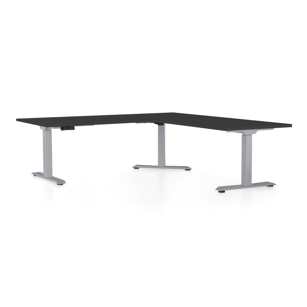 Výškově nastavitelný stůl OfficeTech Angle, 180 x 200 cm, šedá podnož, černá