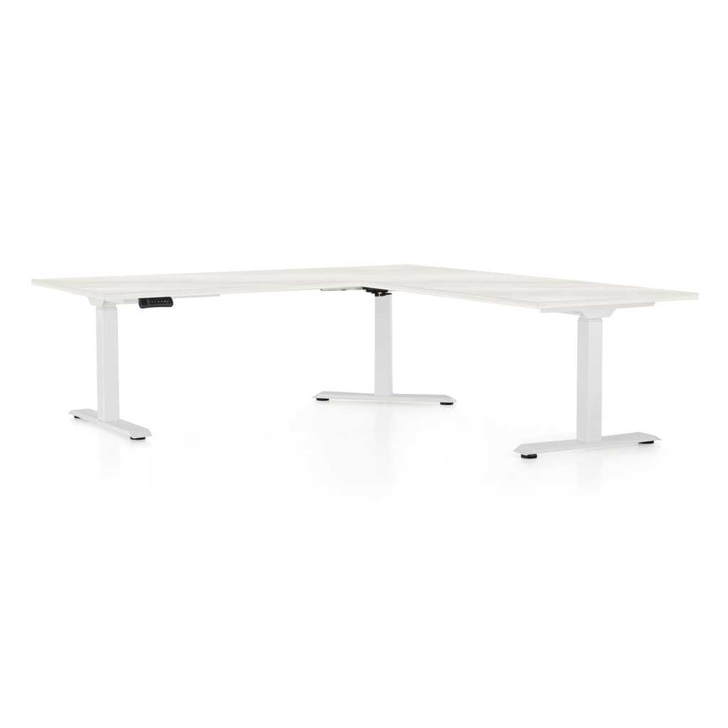 Výškově nastavitelný stůl OfficeTech Angle, 180 x 200 cm, bílá podnož, bílý jasan