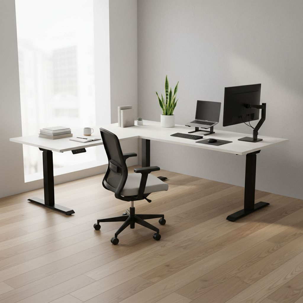 Tento typ stolu OfficeTech je jasná volba pro každého, kdo potřebuje na pracovním stole více místa. Na desku ve tvaru L o vnějších rozměrech 200 × 180 cm se vám bez problému vejdou třeba dva monitory, tiskárna, organizér na dokumenty a cokoli dalšího, co při práci potřebujete. Z hlediska funkcí nabízí stejné možnosti jako nejvyšší řada rovných stolů OfficeTech D: