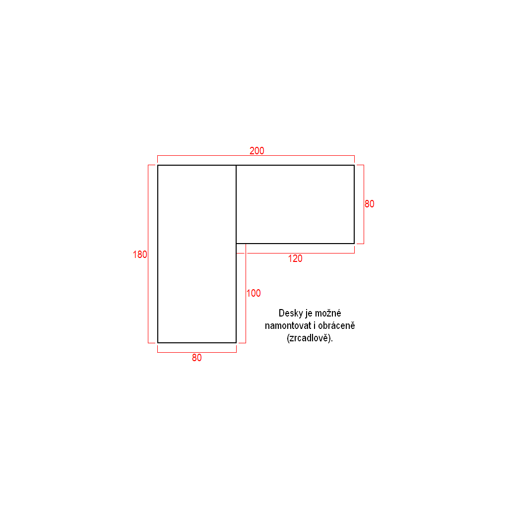 - Desky 180 × 80 a 120 × 80 cm (viz fotogalerie)