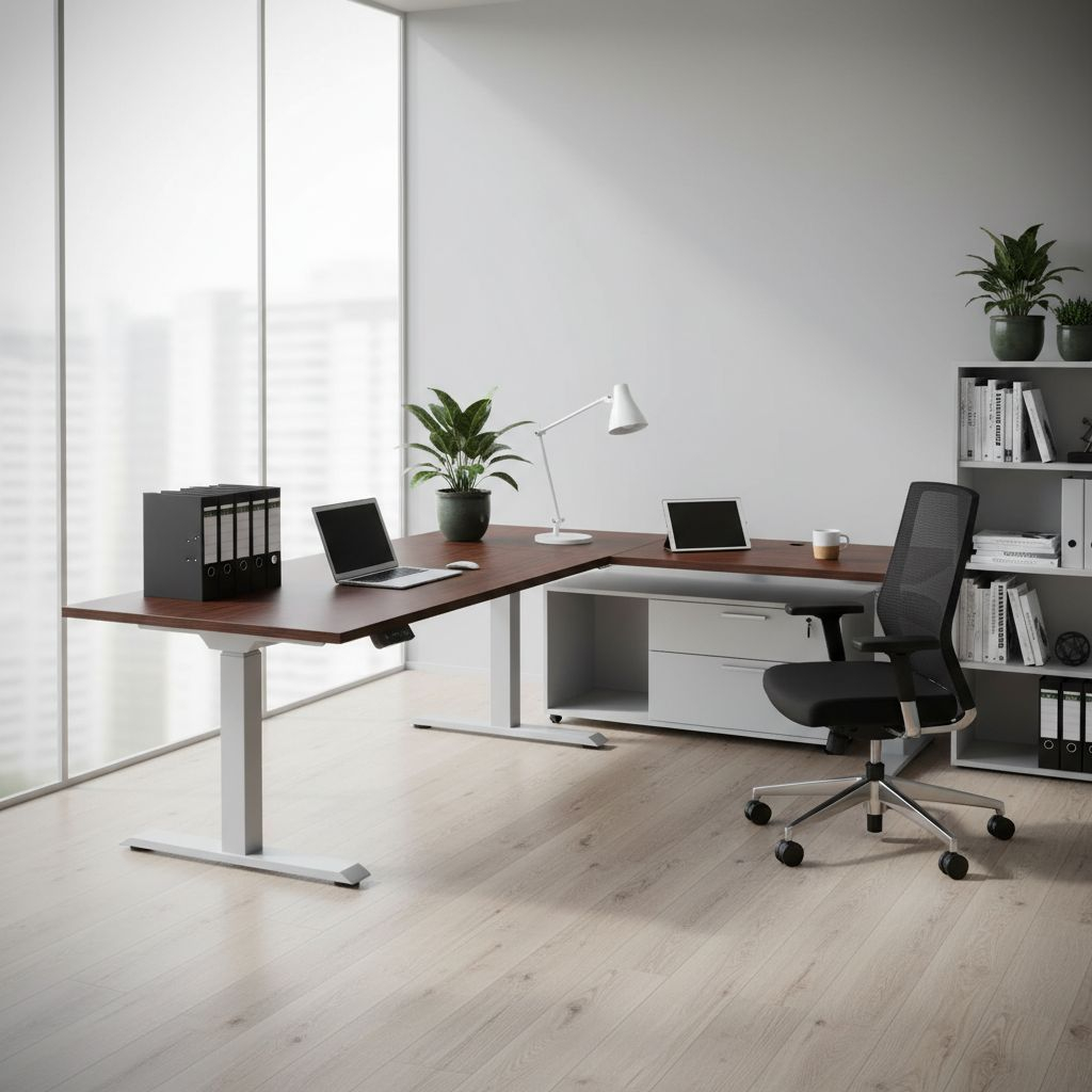 Když stůl při sjíždění do nižší polohy narazí na odpor (např. područku zasunuté židle), zastaví se. Nemusíte se tak bát poškození nábytku nebo spadnutí věcí ze stolu.