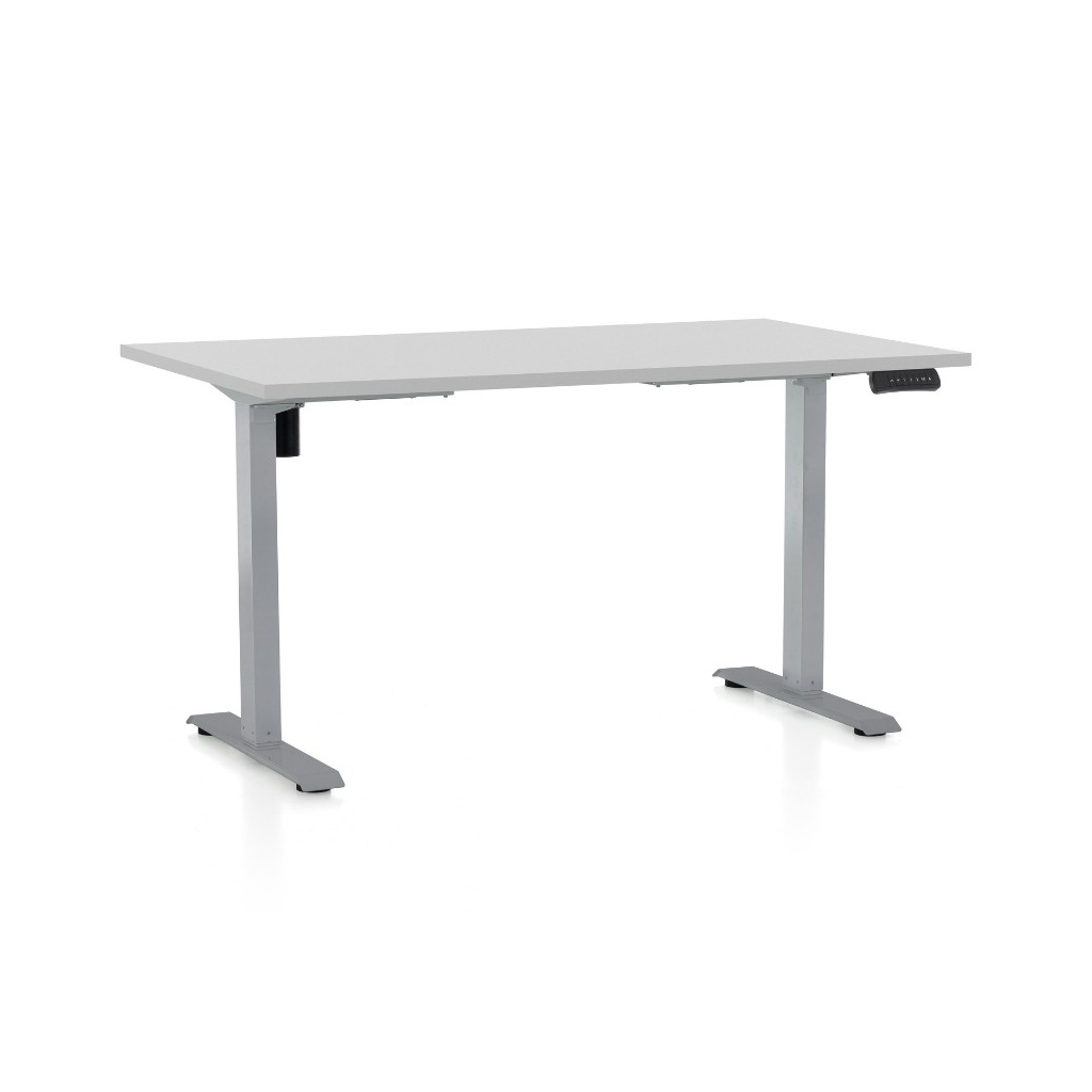 Desky těchto stolů jsou z laminované dřevotřísky s ochrannou ABS hranou. Kovové podnože mají variabilní délku a šířku bezmála 70 cm, což jim zaručí skvělou stabilitu. Napájení řeší kabel do klasické 230V zásuvky.