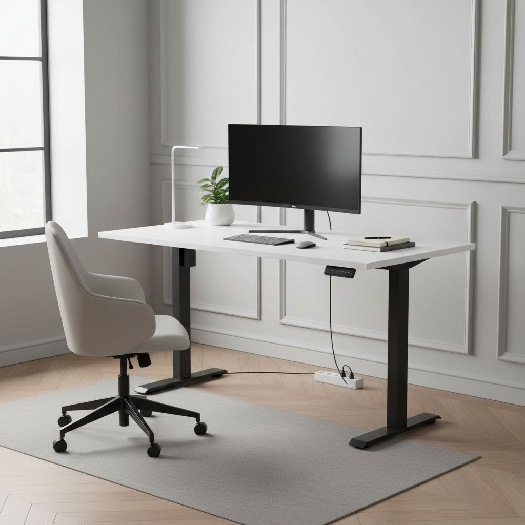 Desky těchto stolů jsou z laminované dřevotřísky s ochrannou ABS hranou. Kovové podnože mají variabilní délku a šířku bezmála 70 cm, což jim zaručí skvělou stabilitu. Napájení řeší kabel do klasické 230V zásuvky.