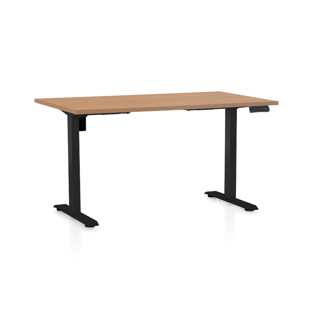 Výškově nastavitelný stůl OfficeTech B, 140 x 80 cm, černá podnož, buk