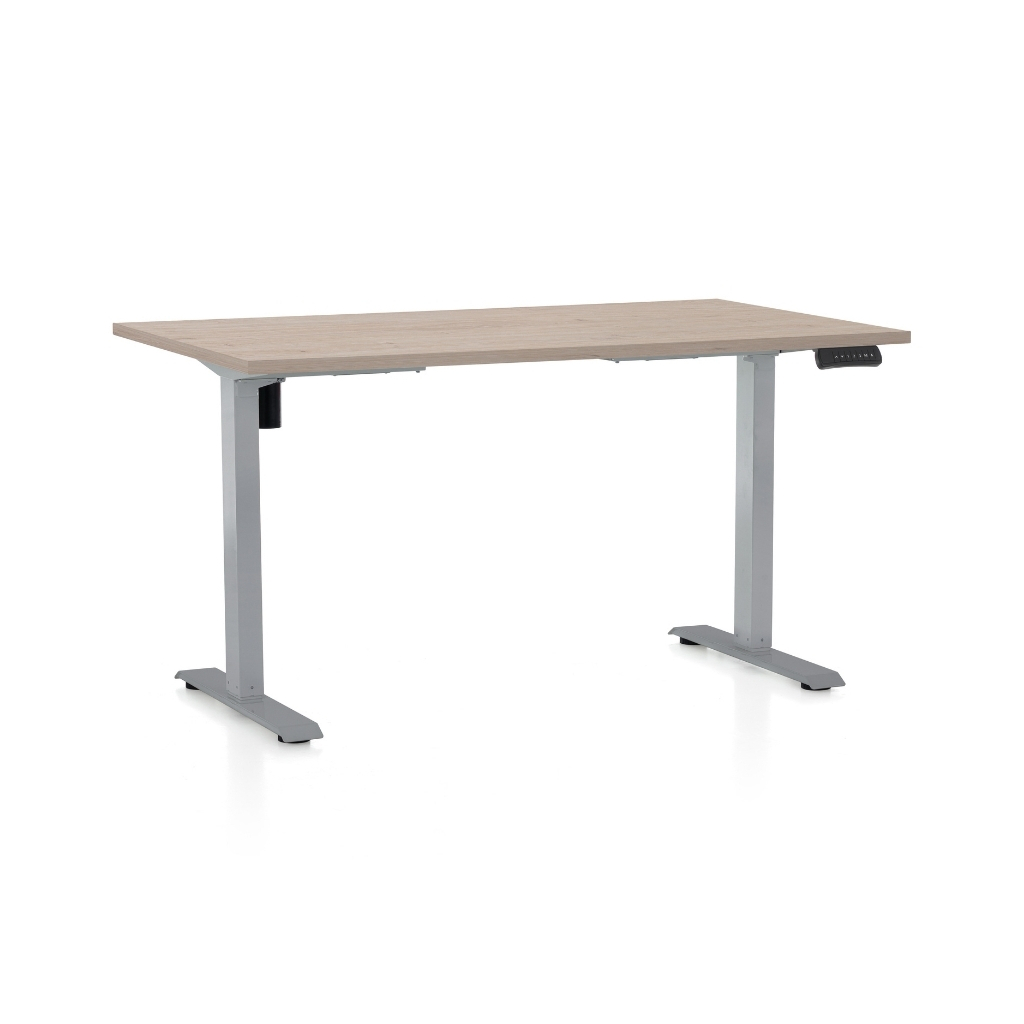 Výškově nastavitelný stůl OfficeTech B, 140 x 80 cm, šedá podnož, dub