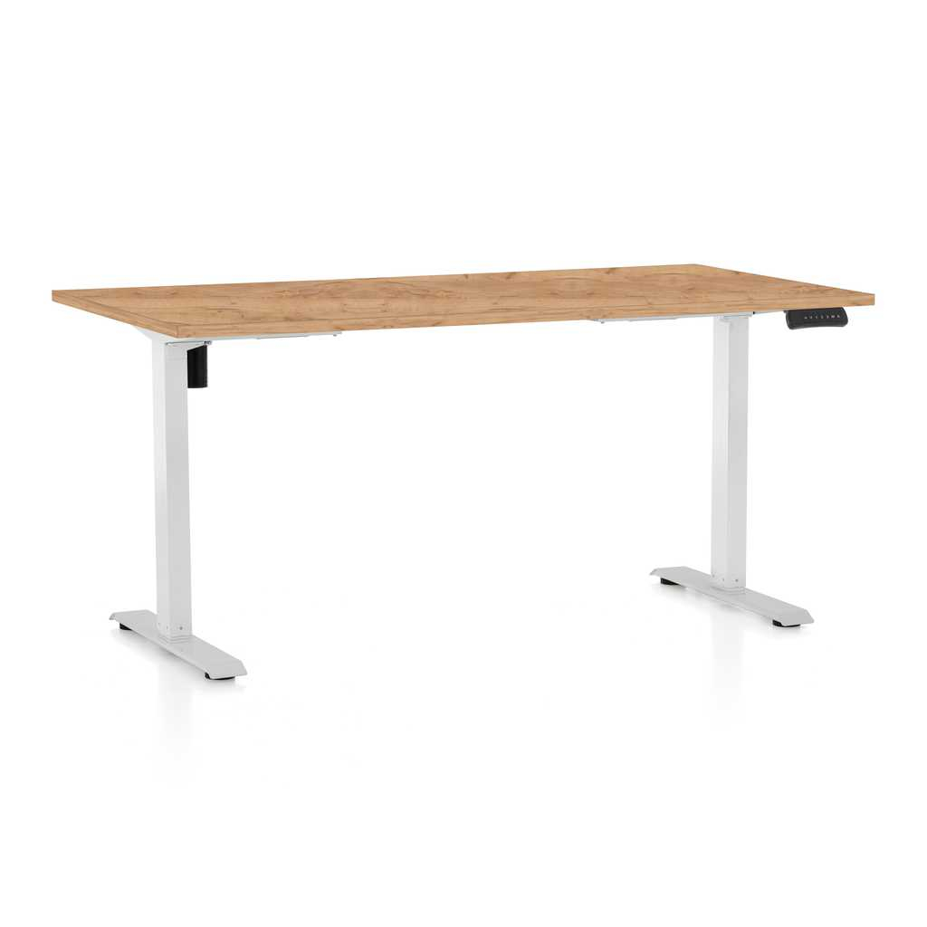 Výškově nastavitelný stůl OfficeTech B, 160 x 80 cm, bílá podnož, dub kraft