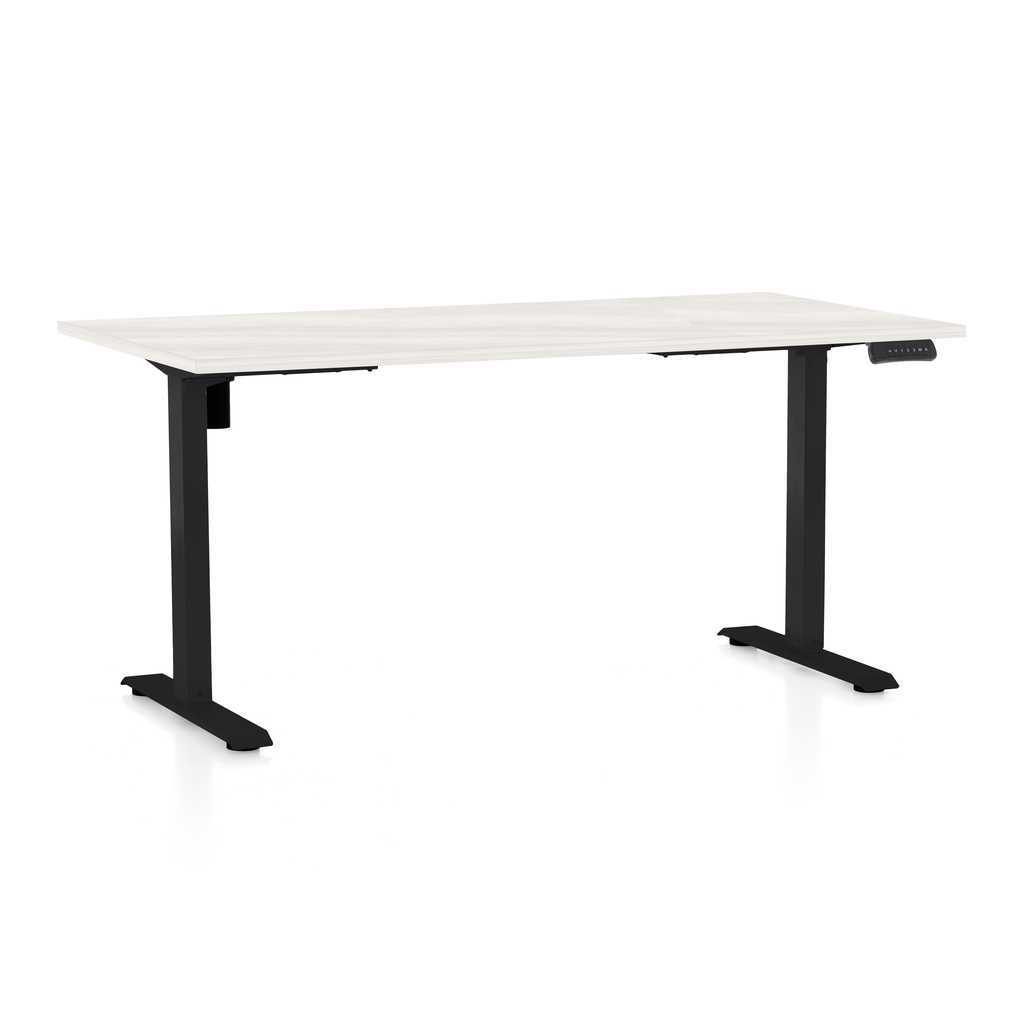 Výškově nastavitelný stůl OfficeTech B, 160 x 80 cm, černá podnož, bílý jasan