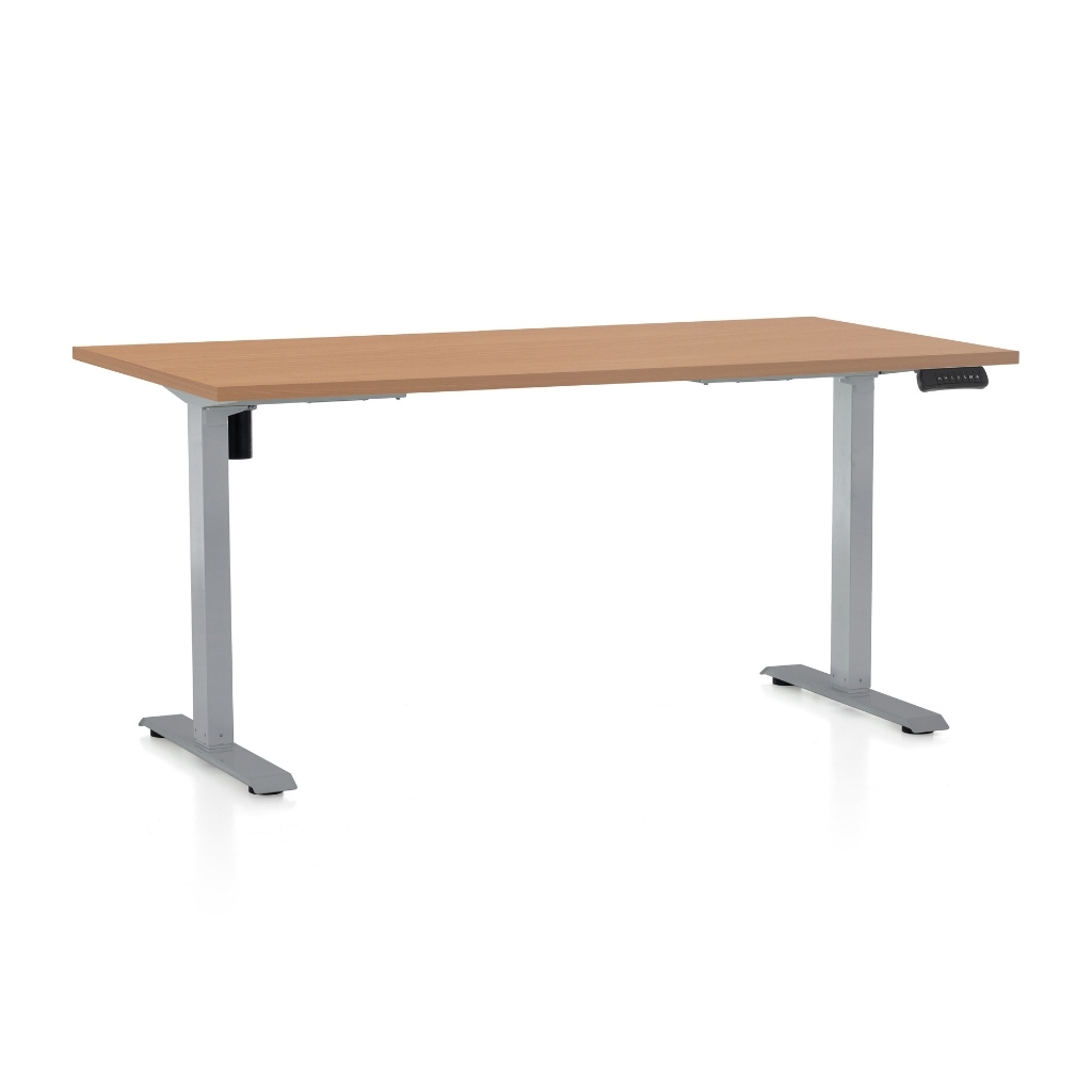 Desky těchto stolů jsou z laminované dřevotřísky s ochrannou ABS hranou. Kovové podnože mají variabilní délku a šířku bezmála 70 cm, což jim zaručí skvělou stabilitu. Napájení řeší kabel do klasické 230V zásuvky.