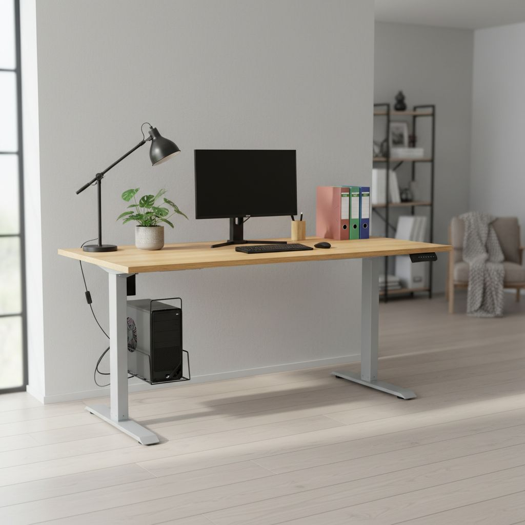 Desky těchto stolů jsou z laminované dřevotřísky s ochrannou ABS hranou. Kovové podnože mají variabilní délku a šířku bezmála 70 cm, což jim zaručí skvělou stabilitu. Napájení řeší kabel do klasické 230V zásuvky.
