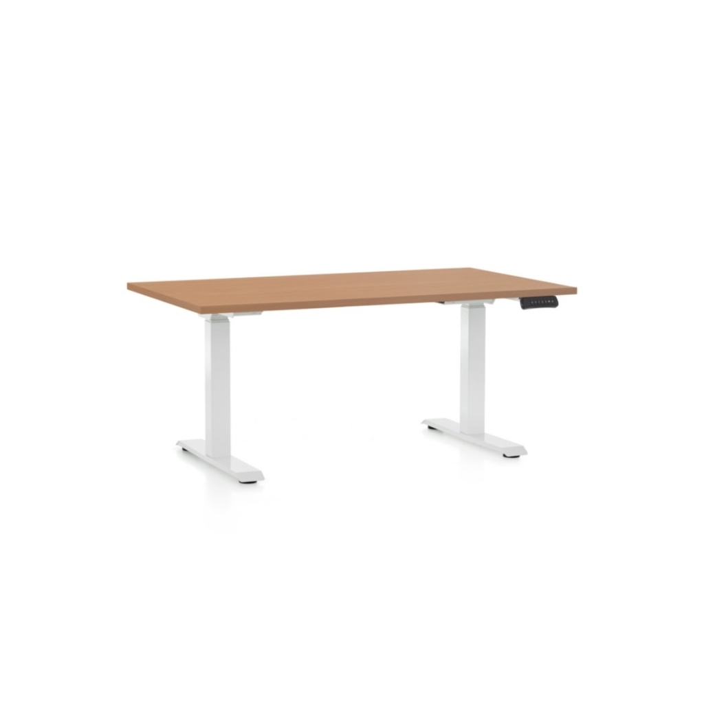 Desky těchto stolů jsou z laminované dřevotřísky s ochrannou ABS hranou. Kovové podnože mají variabilní délku a šířku bezmála 70 cm, což jim zaručí skvělou stabilitu. Napájení řeší kabel do klasické 230V zásuvky.