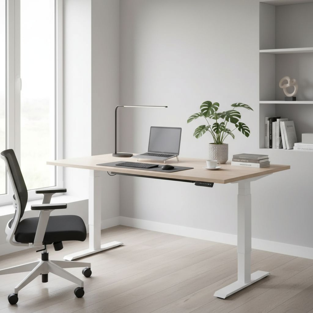 Když stůl při sjíždění do nižší polohy narazí na odpor (např. područku zasunuté židle), zastaví se. Nemusíte se tak bát poškození nábytku nebo spadnutí věcí ze stolu.