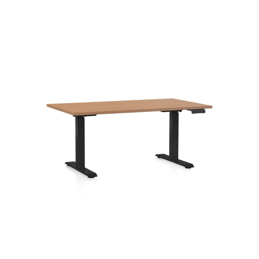 Desky těchto stolů jsou z laminované dřevotřísky s ochrannou ABS hranou. Kovové podnože mají variabilní délku a šířku bezmála 70 cm, což jim zaručí skvělou stabilitu. Napájení řeší kabel do klasické 230V zásuvky.