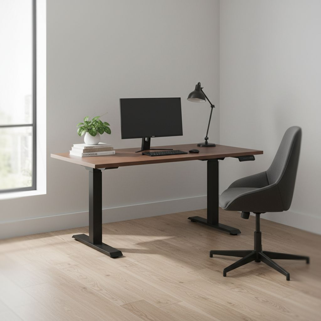 Desky těchto stolů jsou z laminované dřevotřísky s ochrannou ABS hranou. Kovové podnože mají variabilní délku a šířku bezmála 70 cm, což jim zaručí skvělou stabilitu. Napájení řeší kabel do klasické 230V zásuvky.