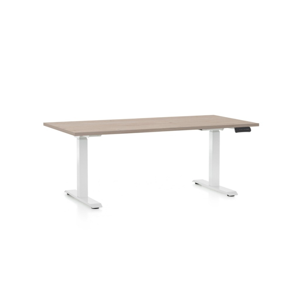 Když stůl při sjíždění do nižší polohy narazí na odpor (např. područku zasunuté židle), zastaví se. Nemusíte se tak bát poškození nábytku nebo spadnutí věcí ze stolu.