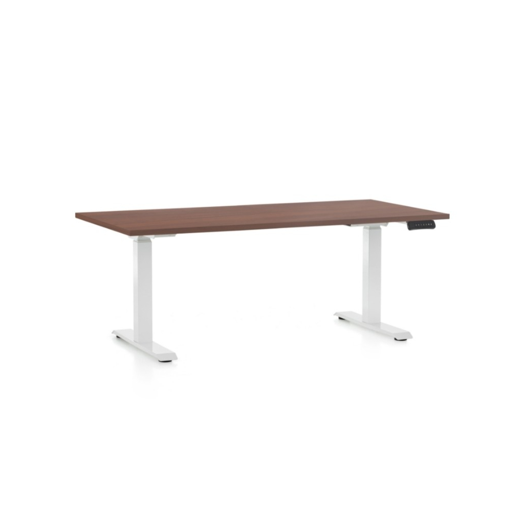 Desky těchto stolů jsou z laminované dřevotřísky s ochrannou ABS hranou. Kovové podnože mají variabilní délku a šířku bezmála 70 cm, což jim zaručí skvělou stabilitu. Napájení řeší kabel do klasické 230V zásuvky.