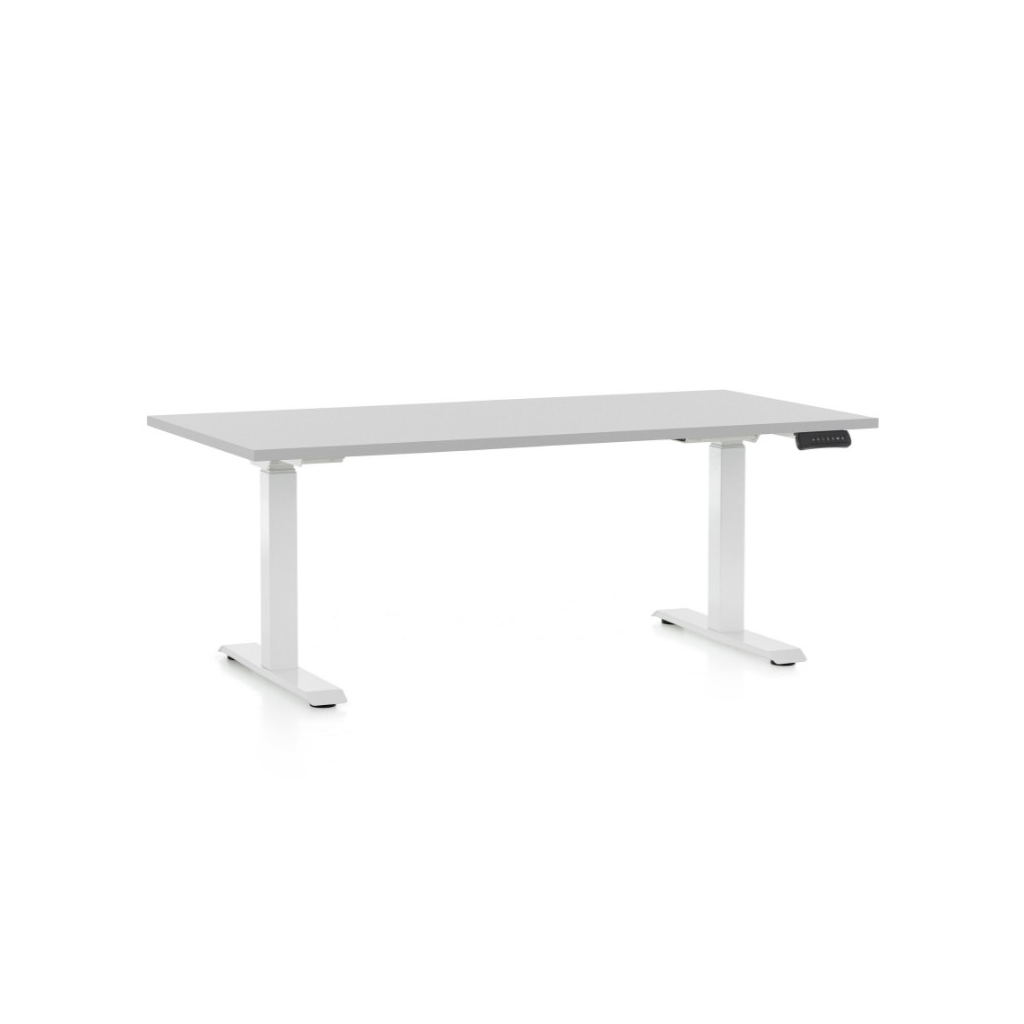 Když stůl při sjíždění do nižší polohy narazí na odpor (např. područku zasunuté židle), zastaví se. Nemusíte se tak bát poškození nábytku nebo spadnutí věcí ze stolu.