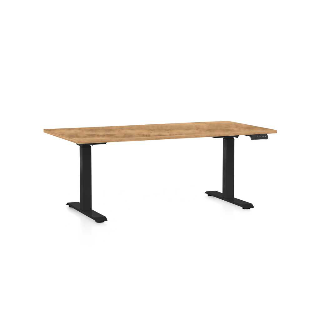 Desky těchto stolů jsou z laminované dřevotřísky s ochrannou ABS hranou. Kovové podnože mají variabilní délku a šířku bezmála 70 cm, což jim zaručí skvělou stabilitu. Napájení řeší kabel do klasické 230V zásuvky.