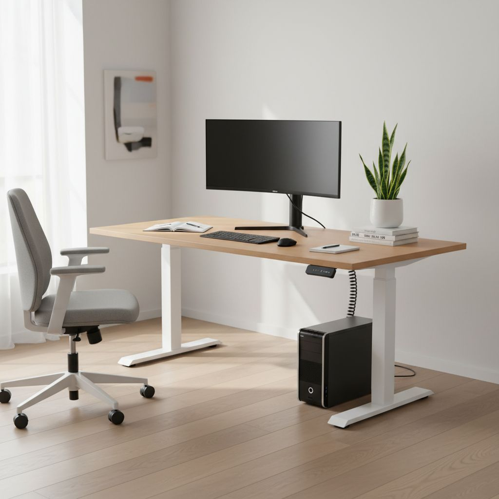 Když stůl při sjíždění do nižší polohy narazí na odpor (např. područku zasunuté židle), zastaví se. Nemusíte se tak bát poškození nábytku nebo spadnutí věcí ze stolu.