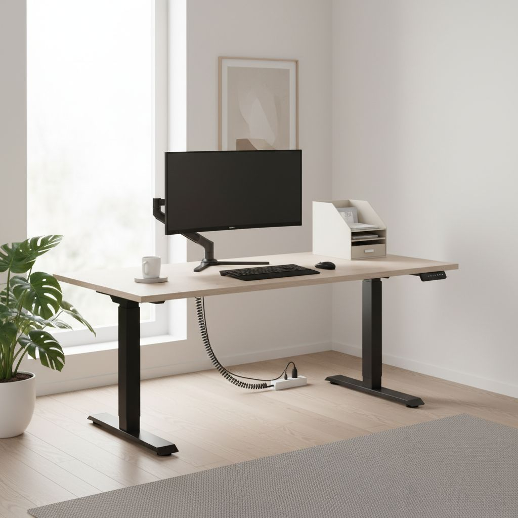 Když stůl při sjíždění do nižší polohy narazí na odpor (např. područku zasunuté židle), zastaví se. Nemusíte se tak bát poškození nábytku nebo spadnutí věcí ze stolu.